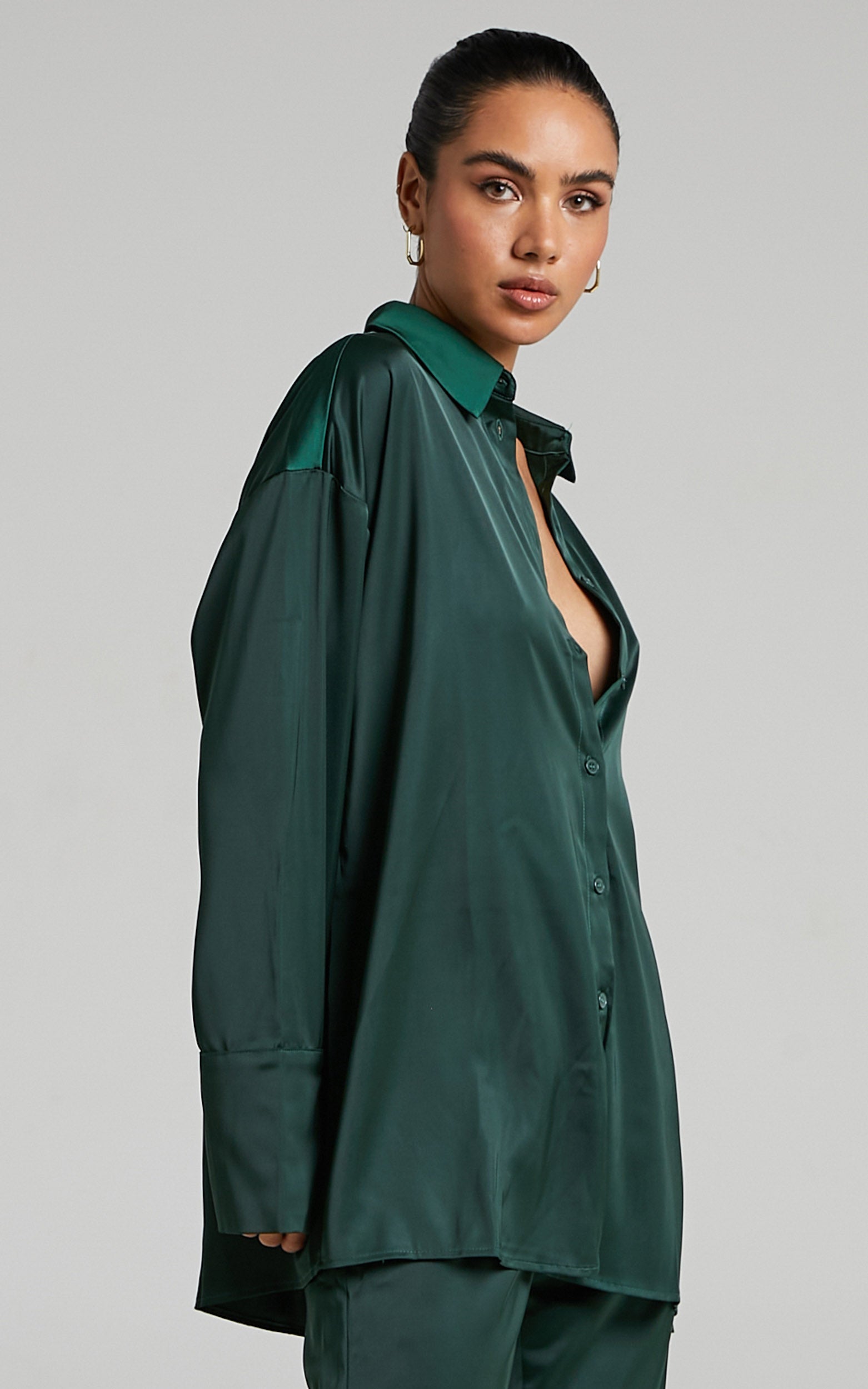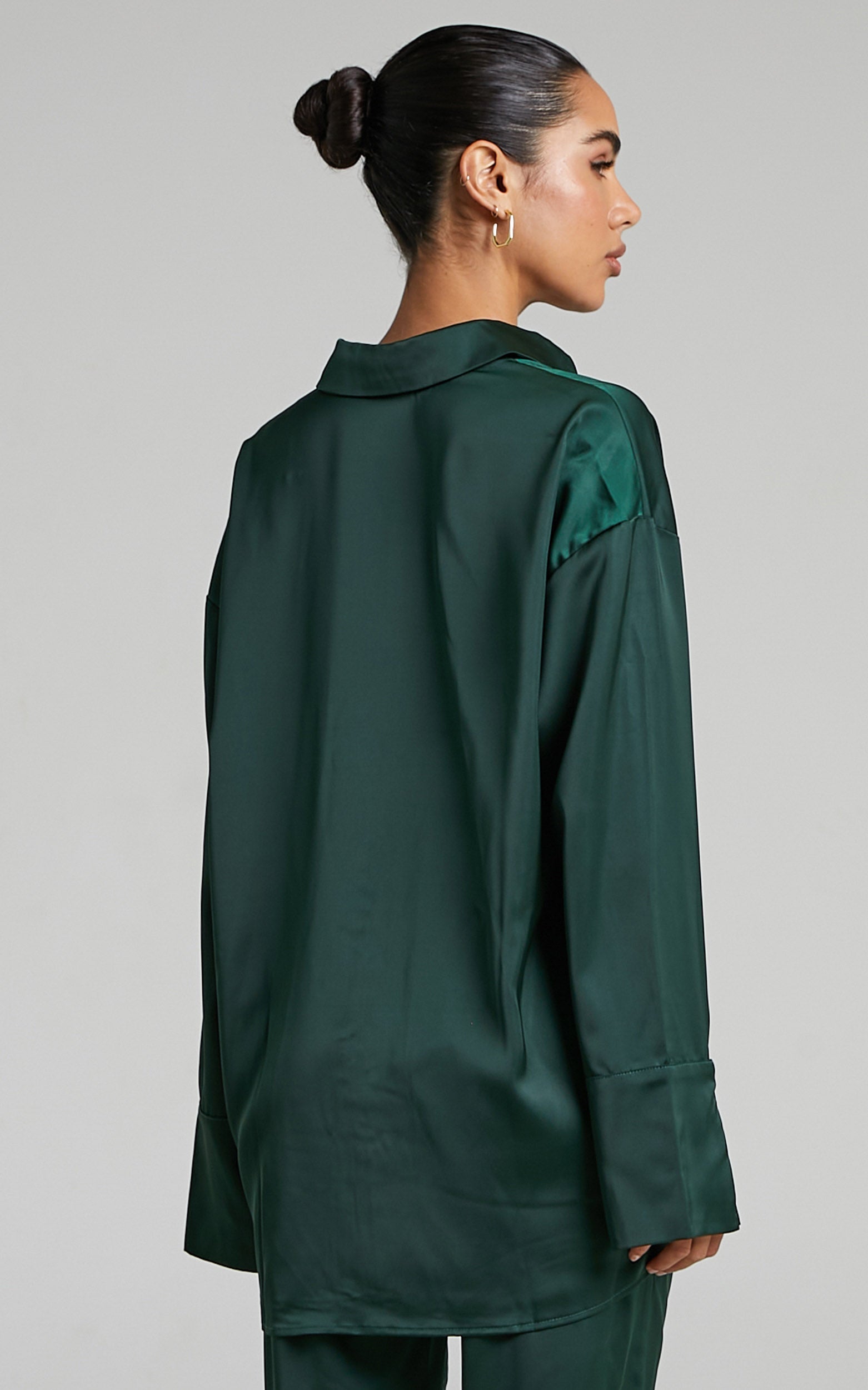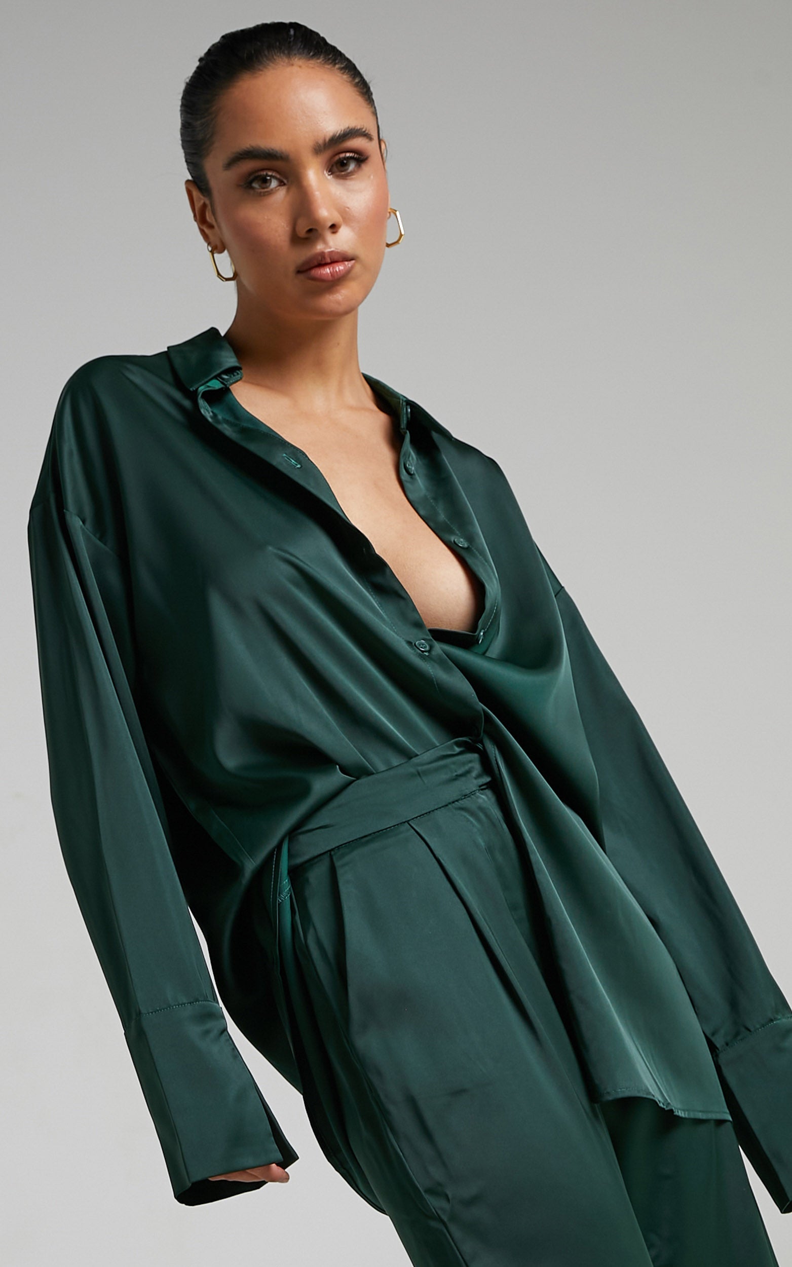 4th & Reckless - Elina Satin Shirt in Forest Green