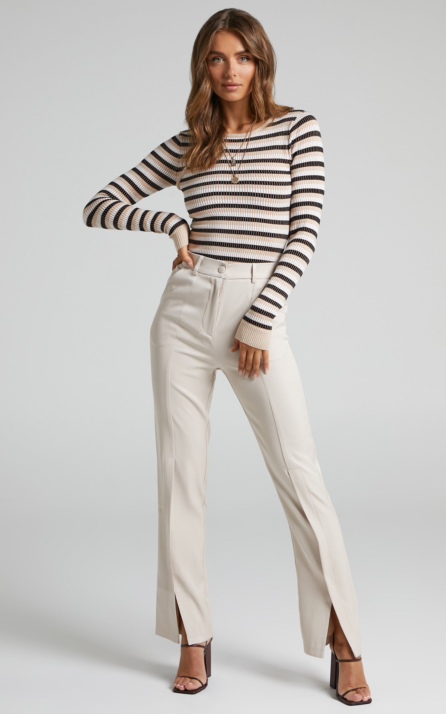 Build the ultimate capsule wardrobe with the 4th & Reckless - Braden Knitted Bodysuit! It’s a striped one-piece with a unique shoulder cutout detail, making it a chic asymmetric-halter top hybrid. This is a perfect transeasonal piece that’ll look perfect in the fall on a coffee date or out-of-town trips. For a vintage touch, style it with the Rolla's - Eastcoast Flare In Tan Cord and 4th & Reckless - Tiffany Ankle Boots In Maroon And Cream!