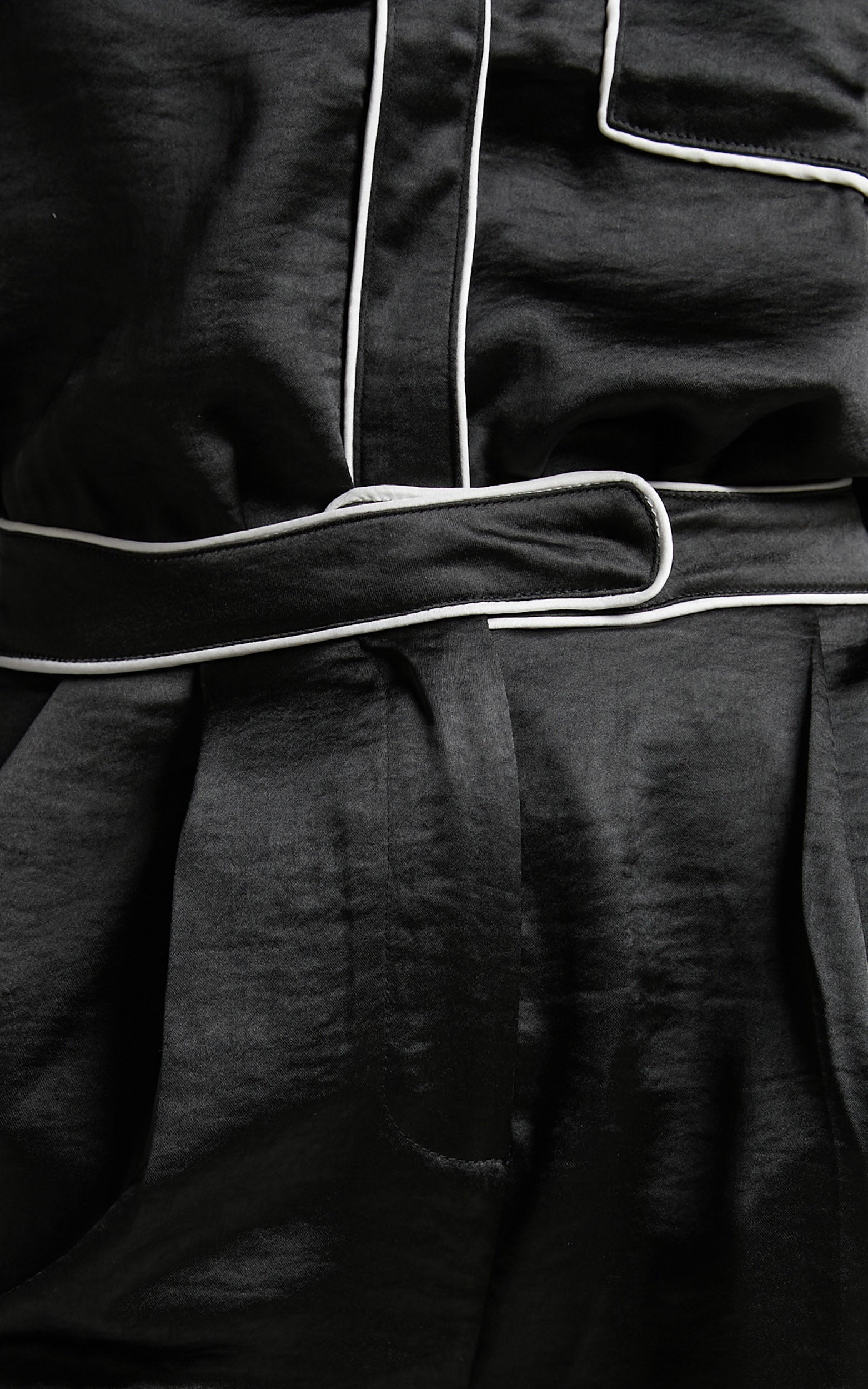Leisurewear just got more luxe. Embrace the pyjama dressing trend with the 4th & Reckless - Ronnie Trouser, a flattering and relaxed trouser with a high waist, wide leg, soft satin finish and contrast white piping throughout.