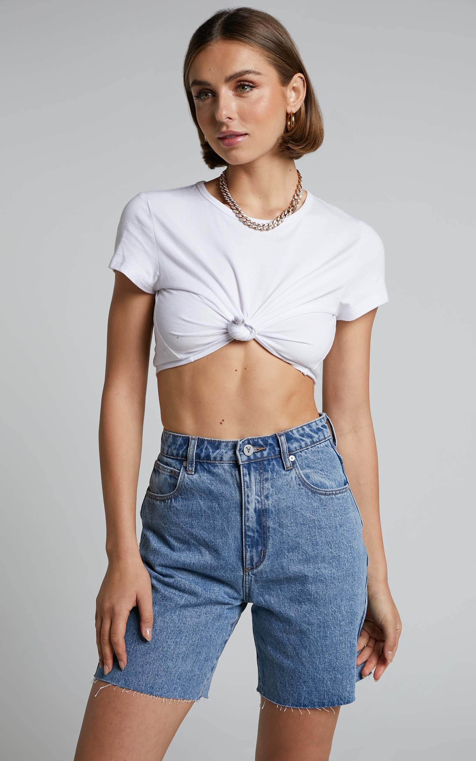 Your summer denim collection needs the Abrand - A Claudia Cut Off Denim Short in Georgia! Cool and versatile, this everyday short features a high waist, longer mid-thigh hem and raw hem detailing. It's such a flattering style that will easily match with all your other summer staples. Wear it to the beach with a ribbed tank top and dad sandals or dress it up for cocktail hour with heeled sandals and a crop top!