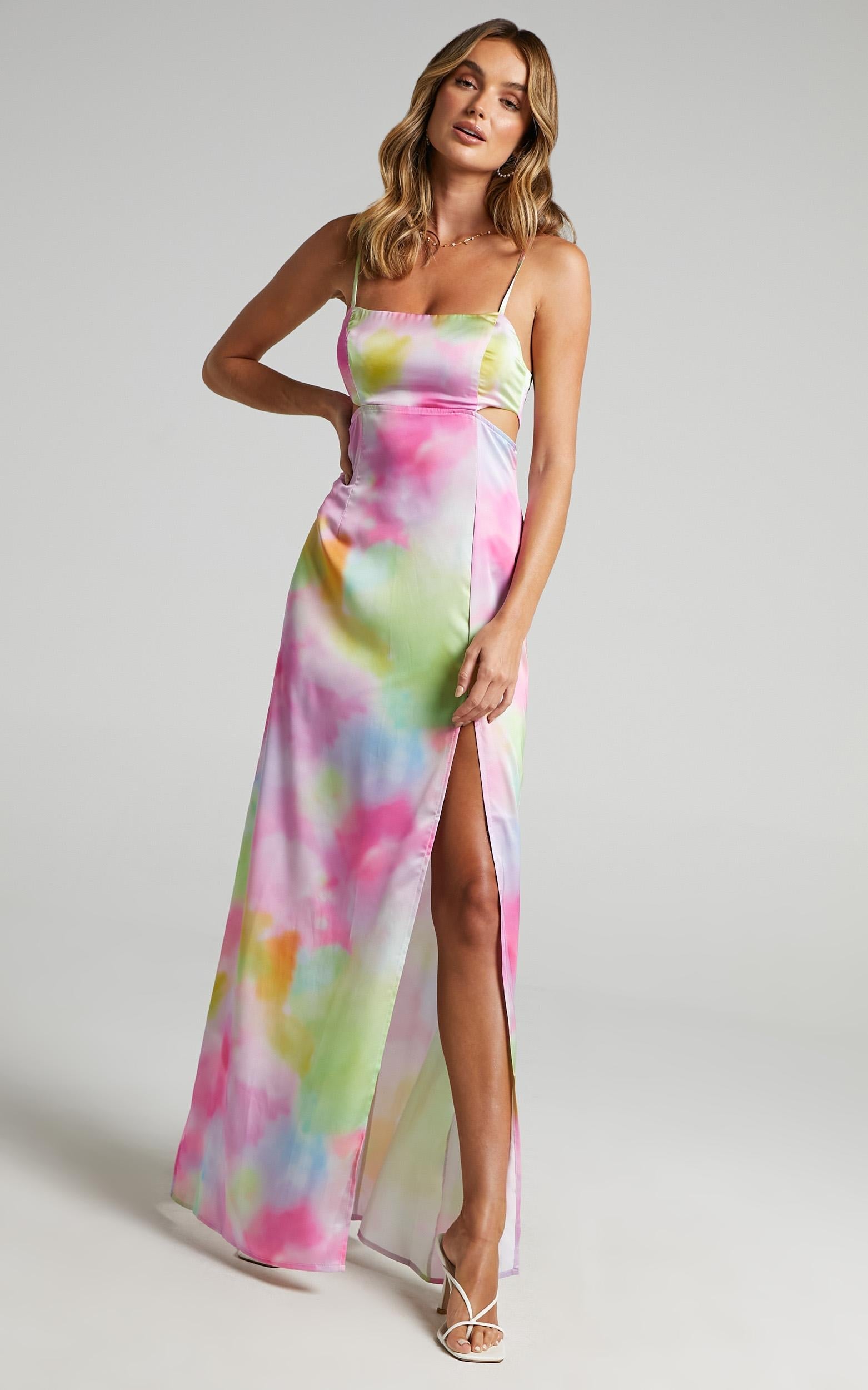 Be the life of the party in our A Special Moment Dress! This pretty maxi features a colourful marble print with cut out detail on the sides and a thigh high split. It's perfect for upcoming day parties and occasions. Slip it on for day drinks with the girls and team it with heeled sandals and a mini handbag to complete the look!