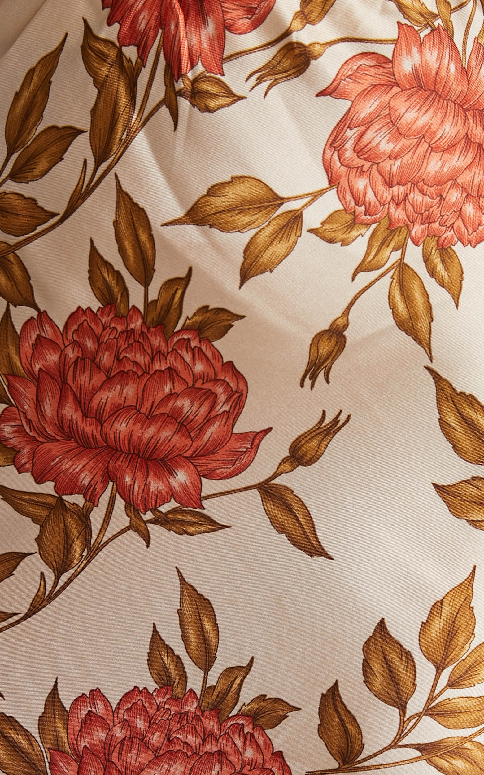 Abagail Midi Dress - One Shoulder Cut Out Dress in Beige Floral