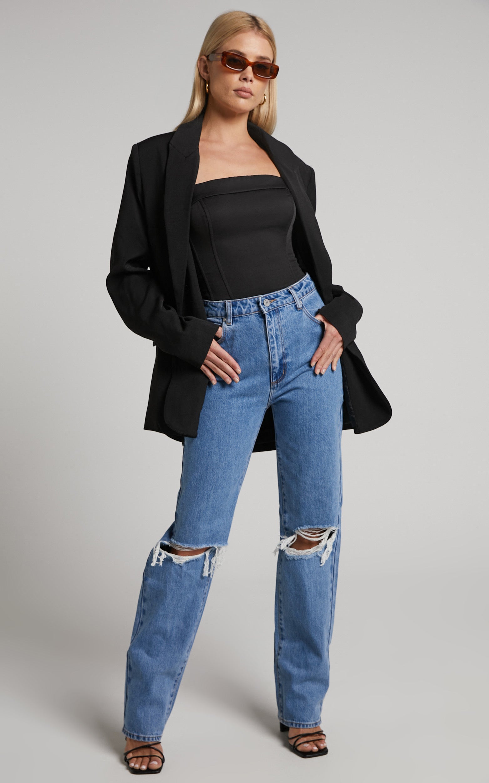 Add the Abrand - A '94 High Straight Georgia Rip Jeans to your wardrobe for cool-girl weekend edits! This straight leg style features a mid blue wash and rips at the knees. Pair them with a cropped tank and sneakers for a casual fit or style them up for nights out with a blazer, bralette and heels.