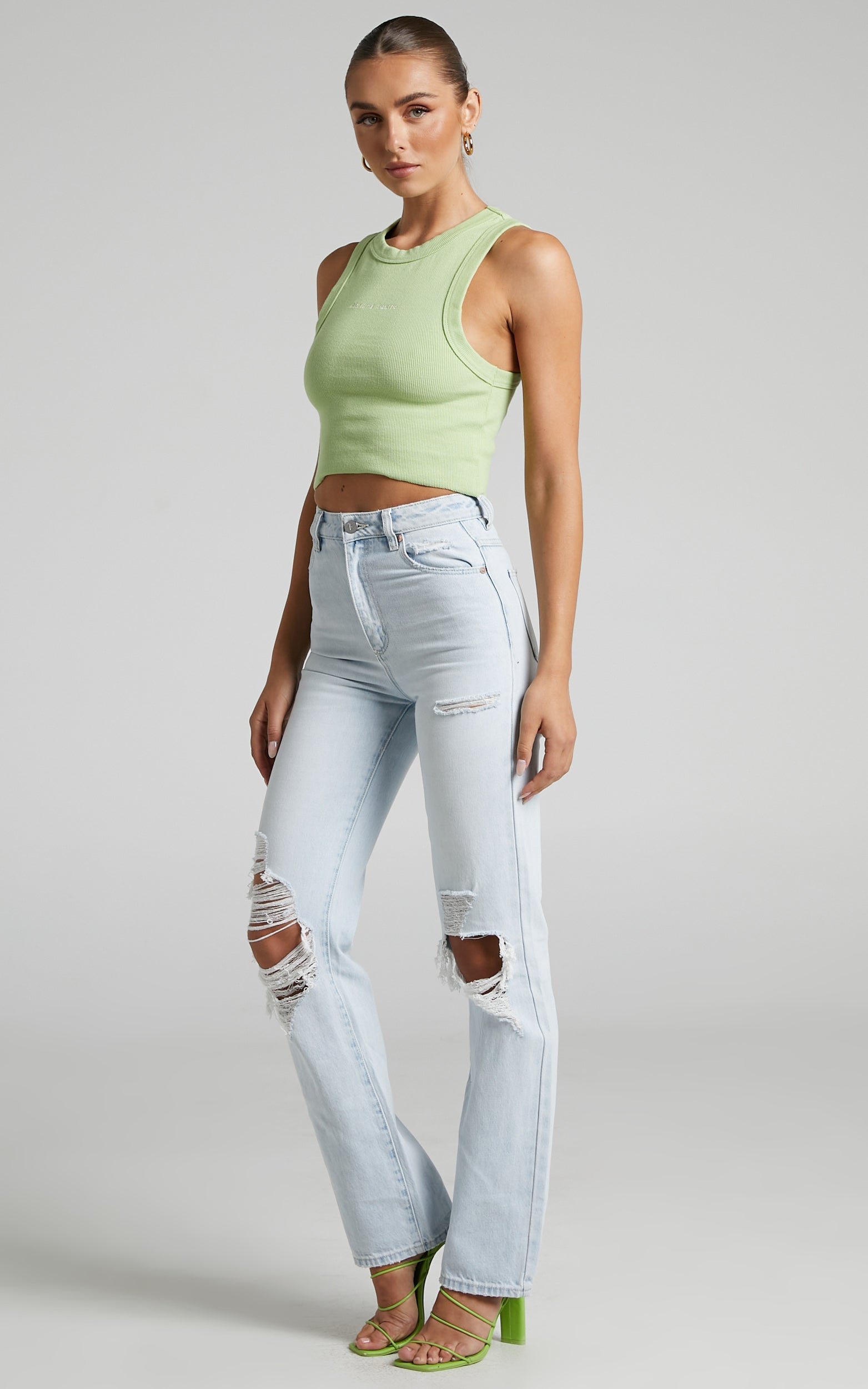 Add the Abrand - A '94 High Straight Millie Rip Jean to your wardrobe for cool-girl weekend edits! This straight leg style is washed in a light blue shade with rips and distressed detail over both knees. Pair them with a cropped tank and sneakers for a casual fit or style them up for nights out with a blazer, bralette and heels.