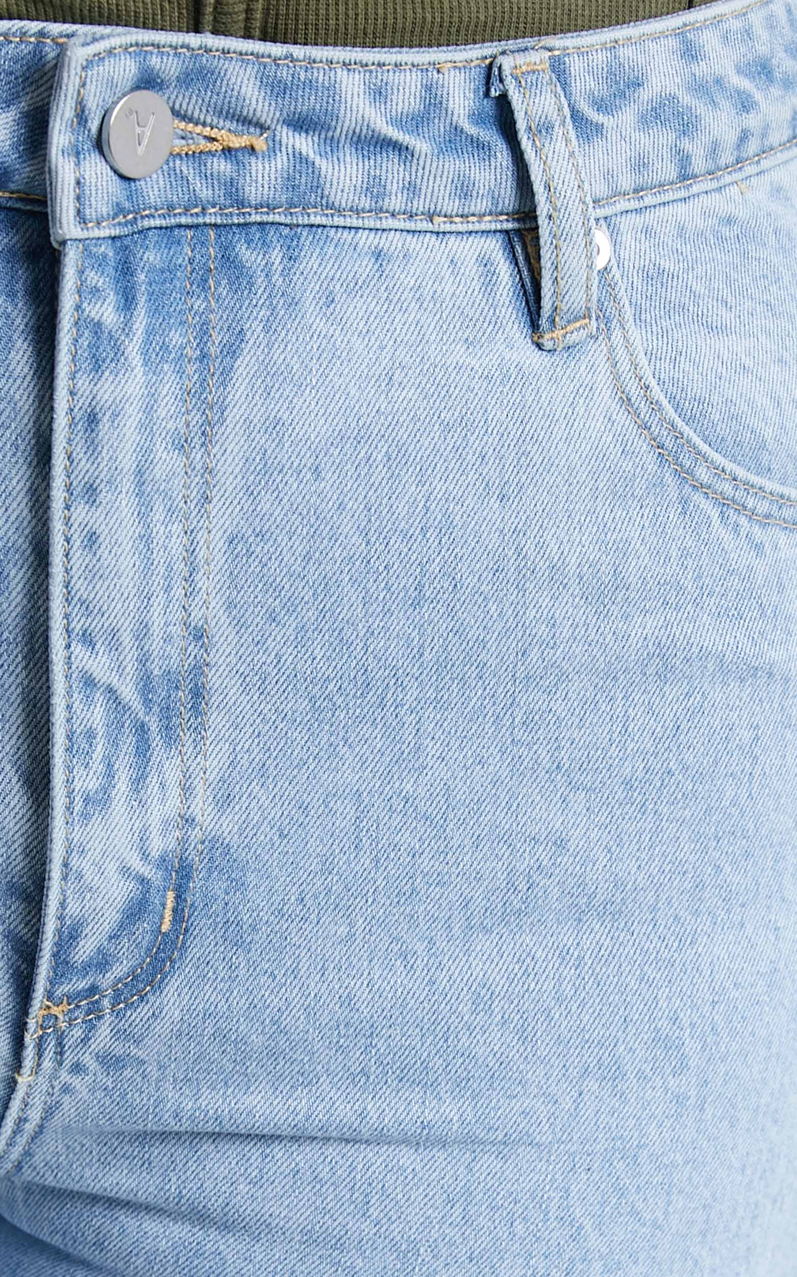 Calling all petite babes. Upgrade your jean collection with the Abrand - A '94 High Straight Jean! This timeless jean is everyone's fave and will be yours too. Featuring a high rise waist, straight leg fit, blue stonewash finish, pockets, and raw hem, it is super versatile and can be paired with anything. Wear it with a cropped tank, chunky sneakers and a tote bag for a casual look!