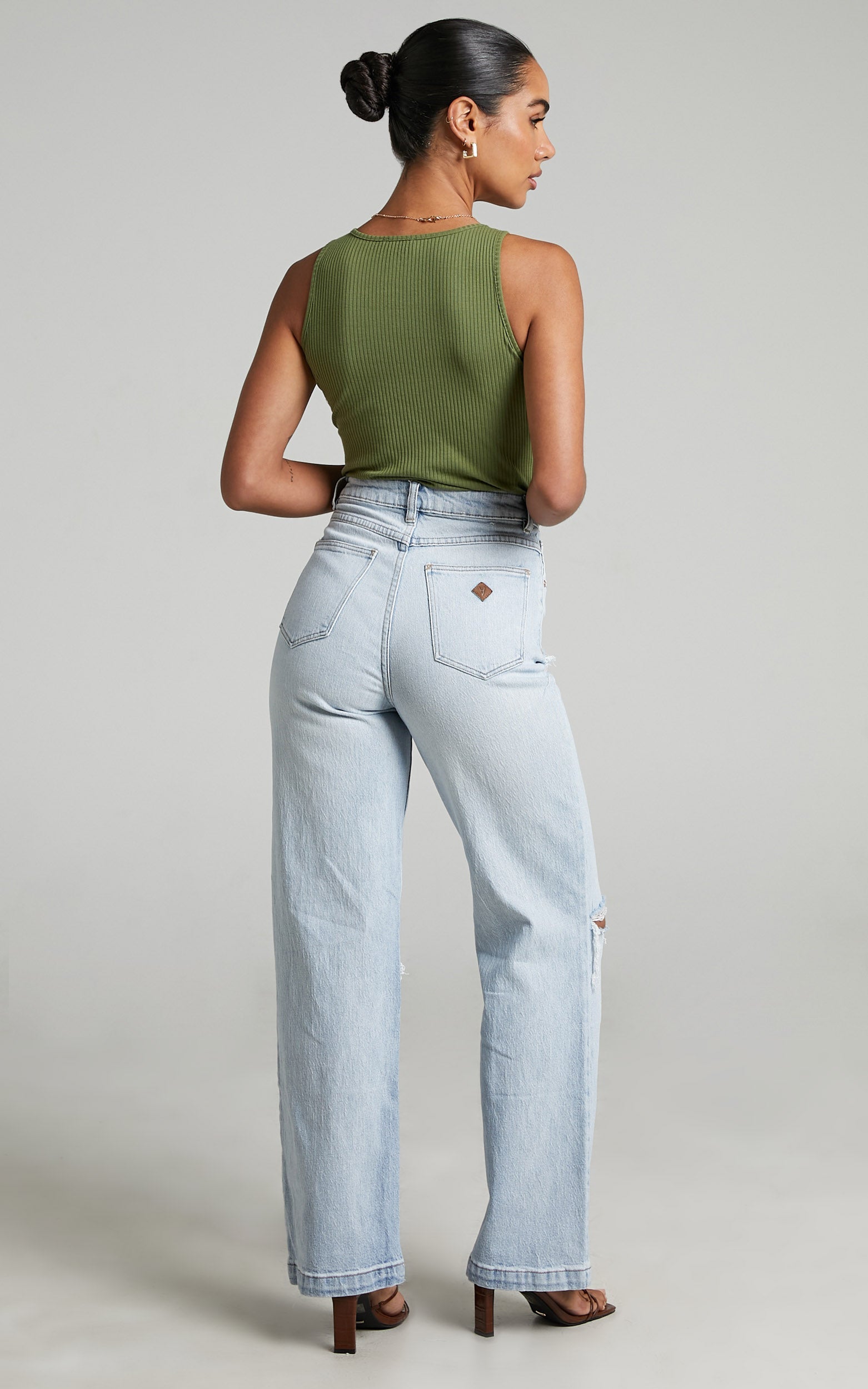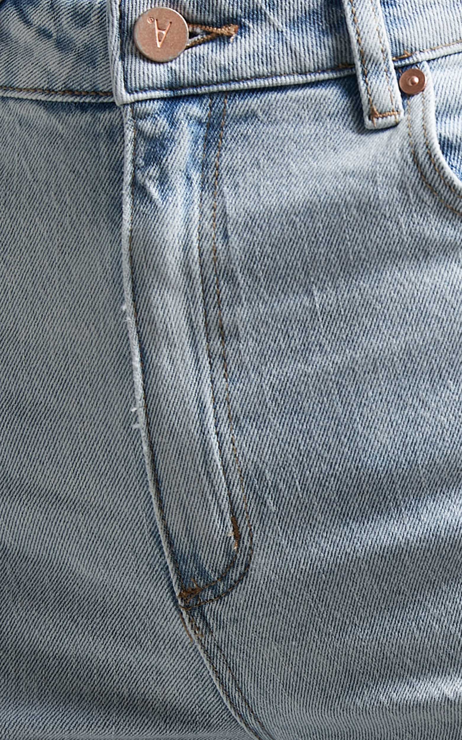 One of the hottest denim silhouettes of the season is yours with the Abrand - A 94 High & Wide Jean in Grace Rip! Featuring a wide leg and pale blue wash, this stunning jean features distressed detailing at the knees, introducing a modern flair to your casual looks. Add platform sandals and a crop top for a summery finish or swap the sandals for heels for a cute party look!