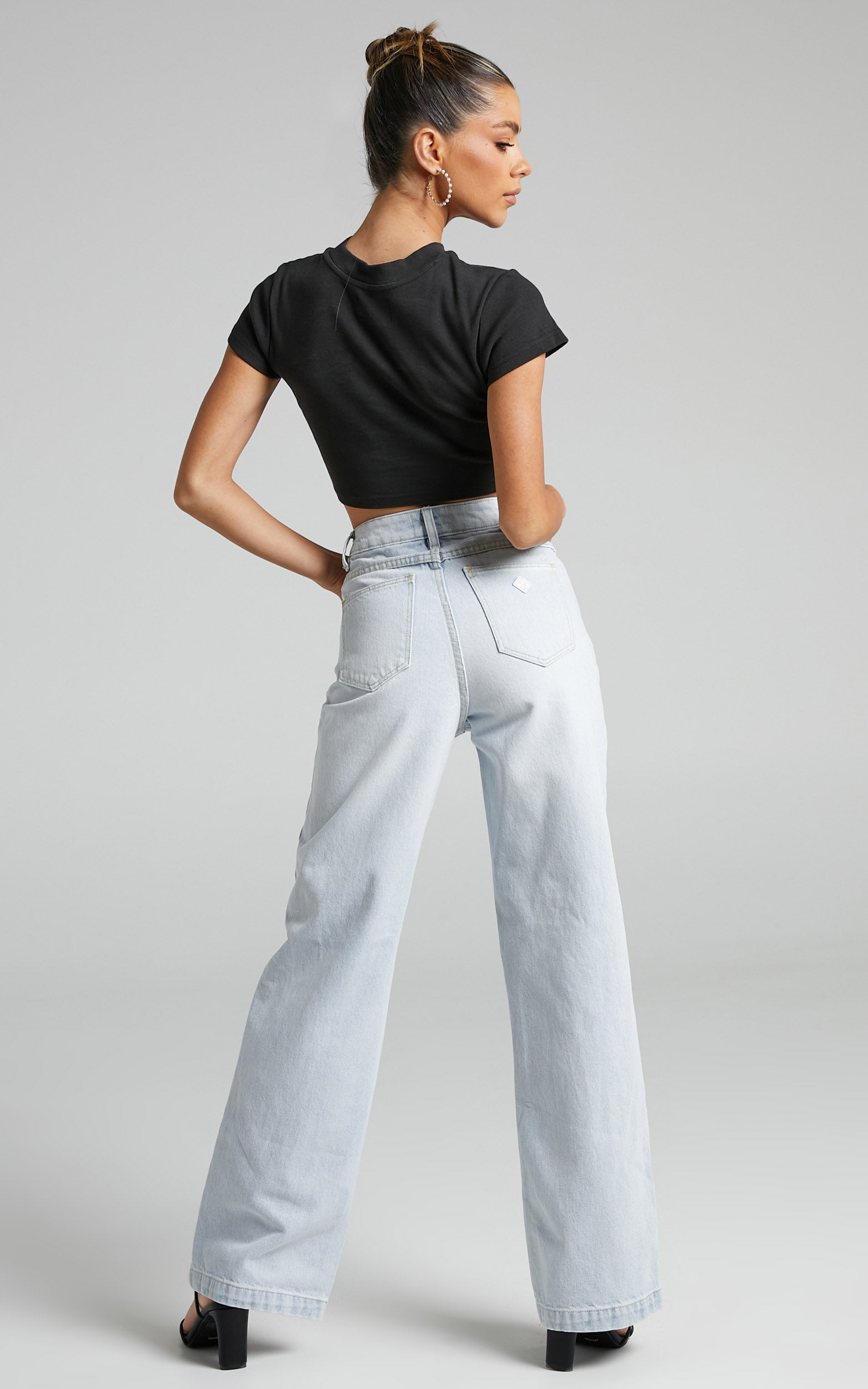 One of the hottest denim silhouettes of the season is yours with the Abrand - A '94 High & Wide Millie Organic Jean! Featuring a wide leg and light bleached denim wash, this stunning jean will bring some retro flair to your casual looks. Add platform sandals and a crop top for a summery finish or swap the sandals for heels for that party coming up!