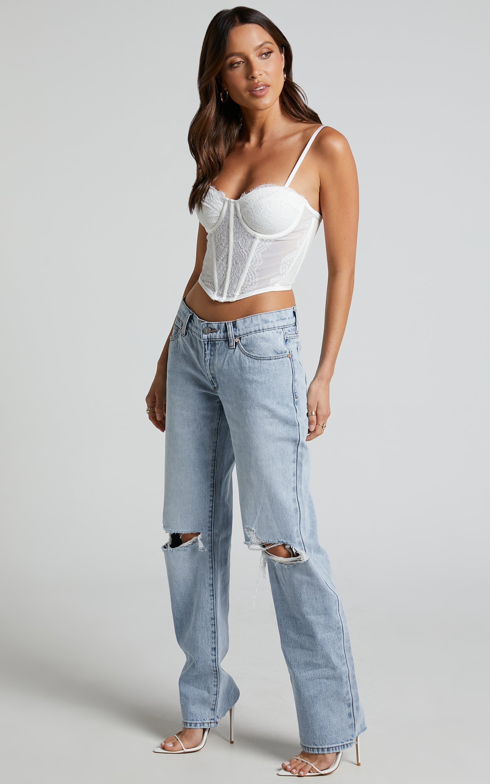 Abrand - A '99 Low Straight Joanne Rip Jeans in Distressed Light Denim