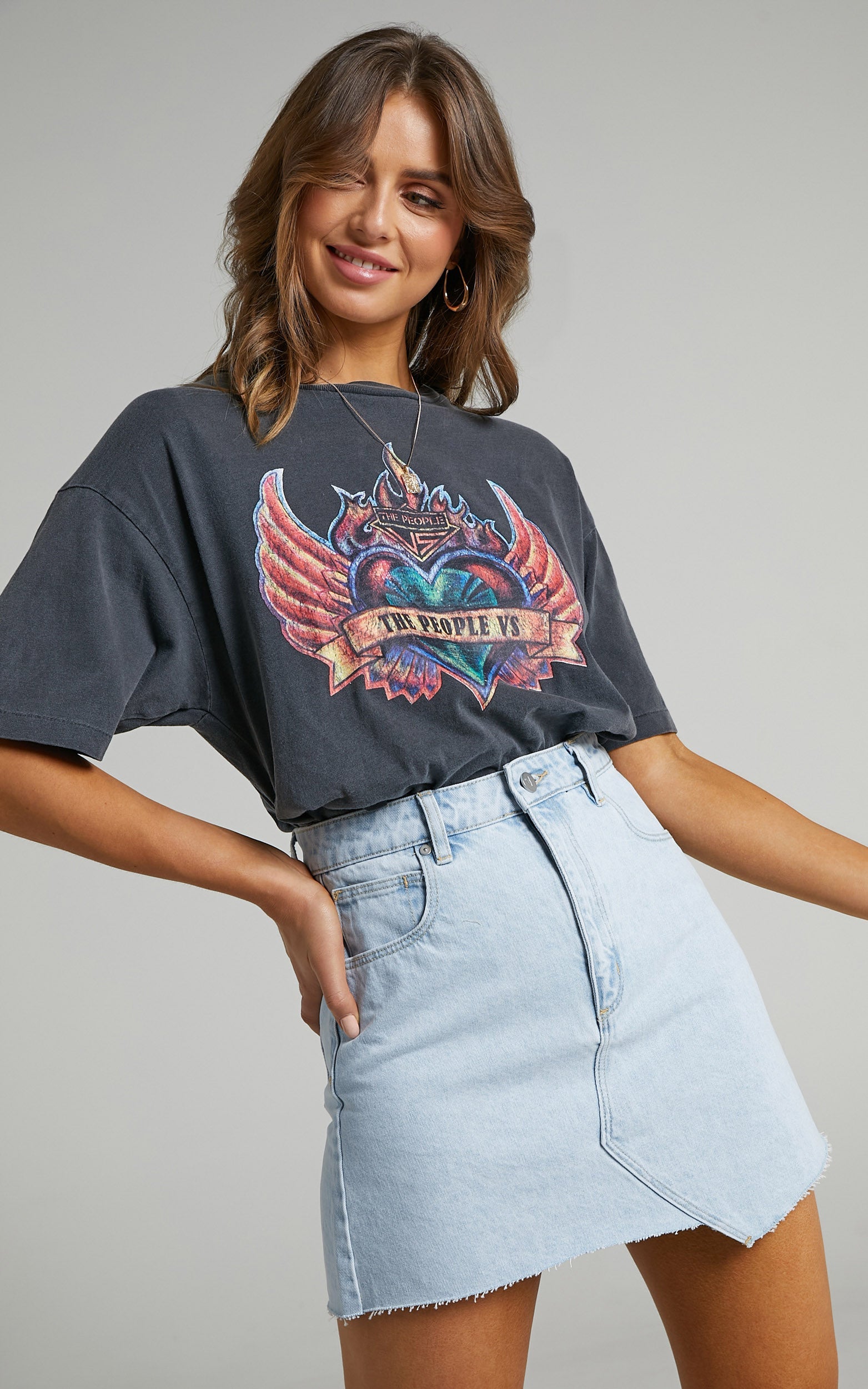 - Asymmetric hem with raw finish
