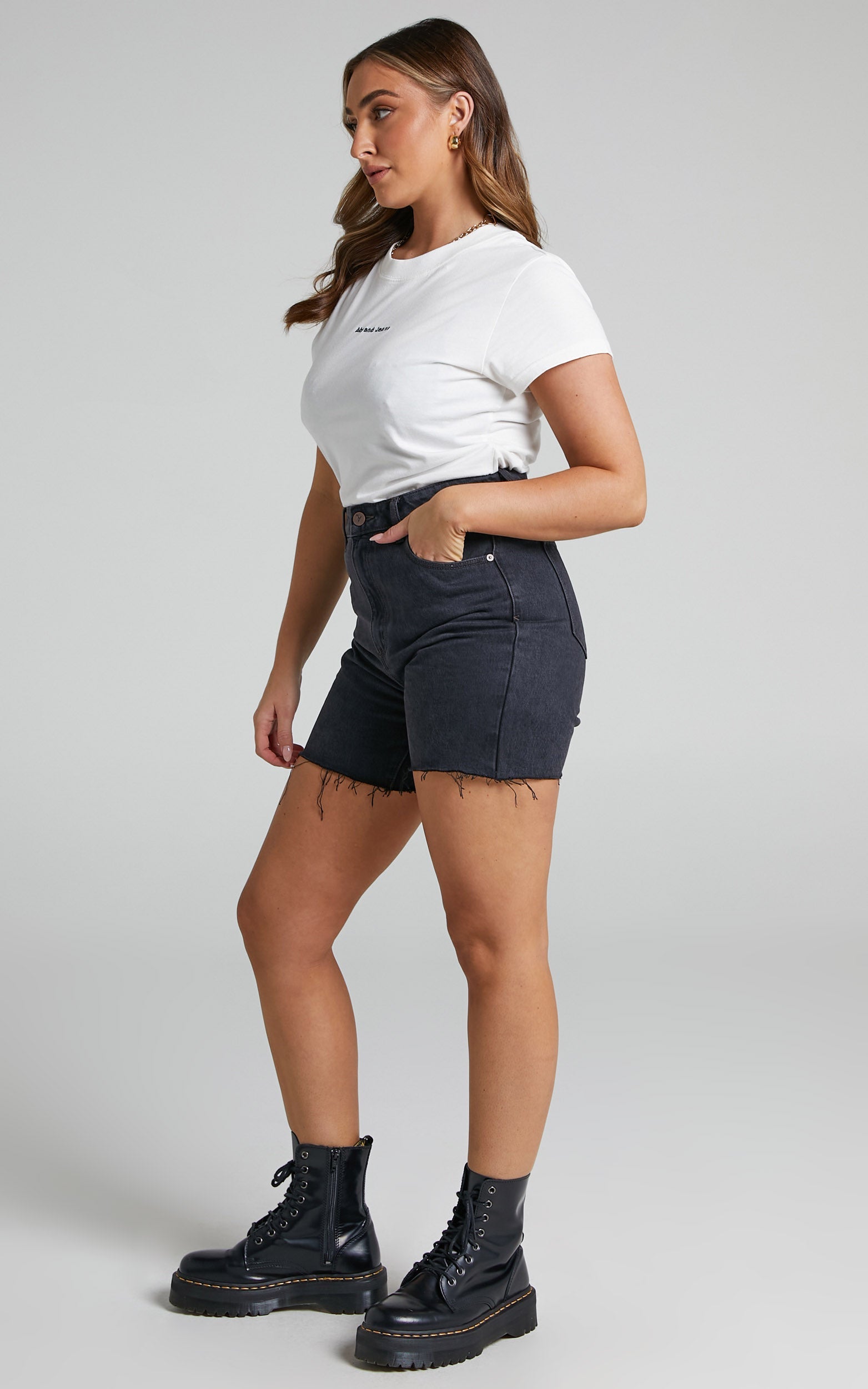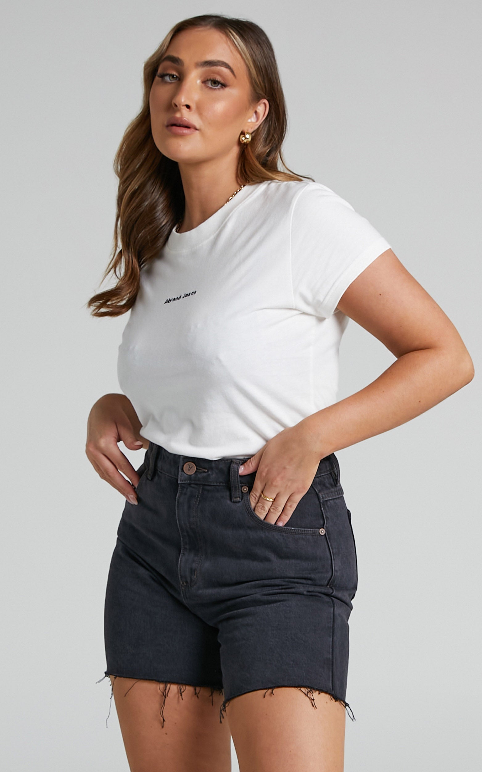 Your summer denim collection needs the Abrand - A Claudia Cut Off Denim Short in Black Box! Easy and versatile, this everyday short features a high waist, longer hem and raw hem detailing. It's such a flattering style that will easily match with all your other summer staples. Wear it to the beach with a ribbed tank top and dad sandals or style it up for cocktail hour with heeled sandals and a crop top!