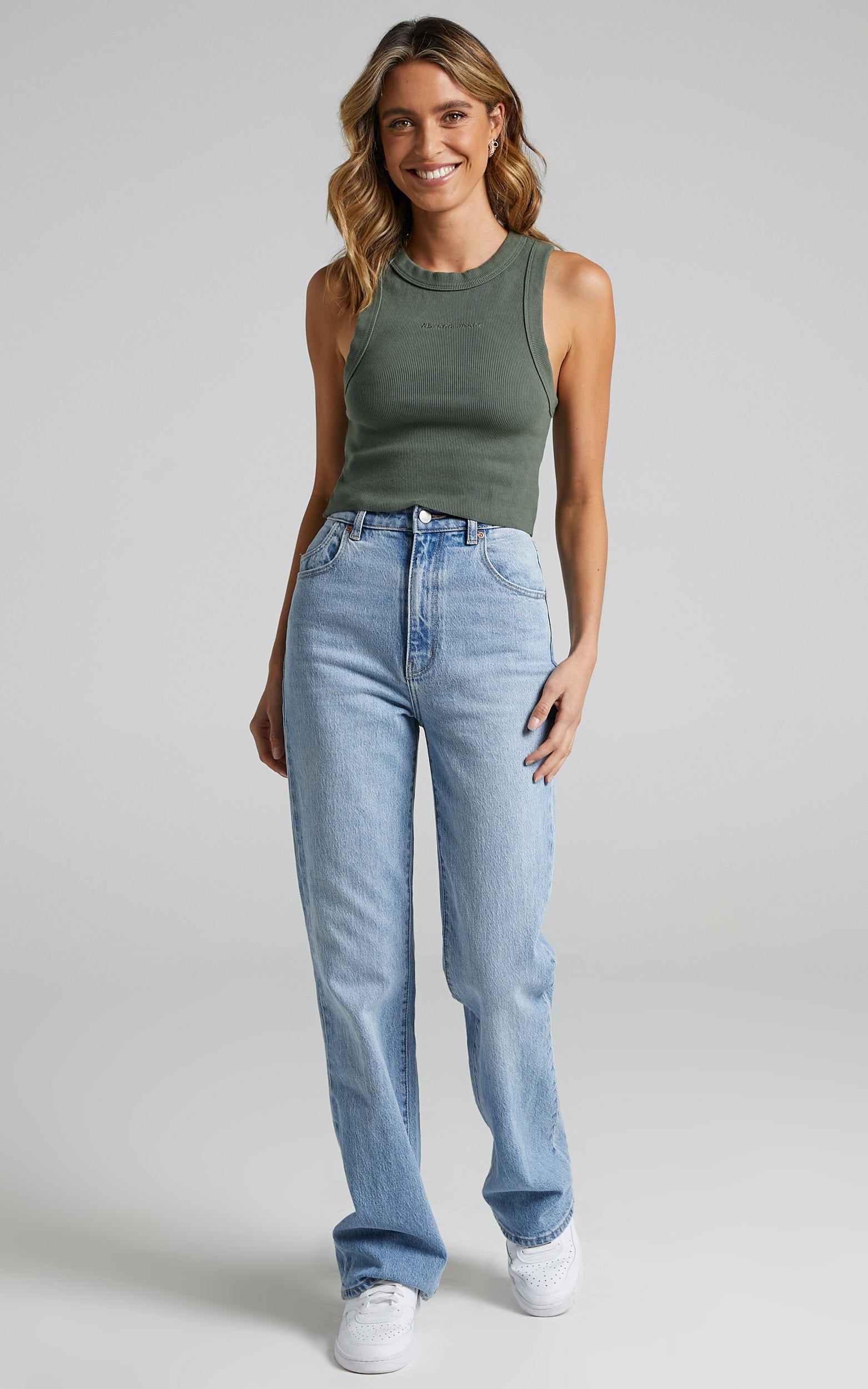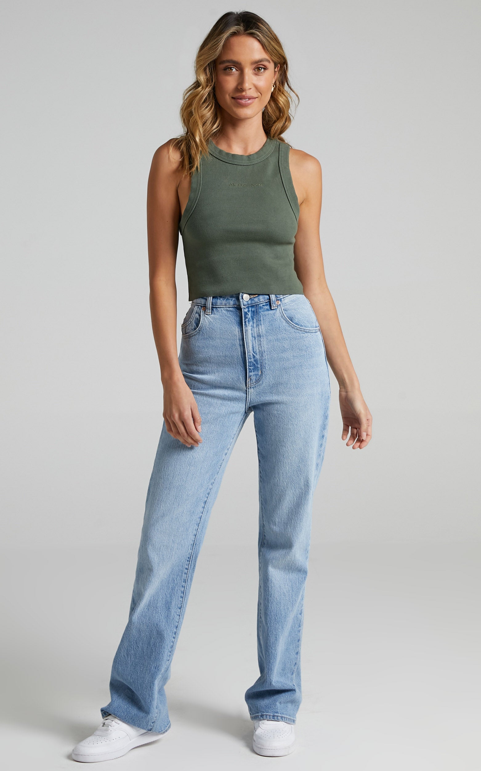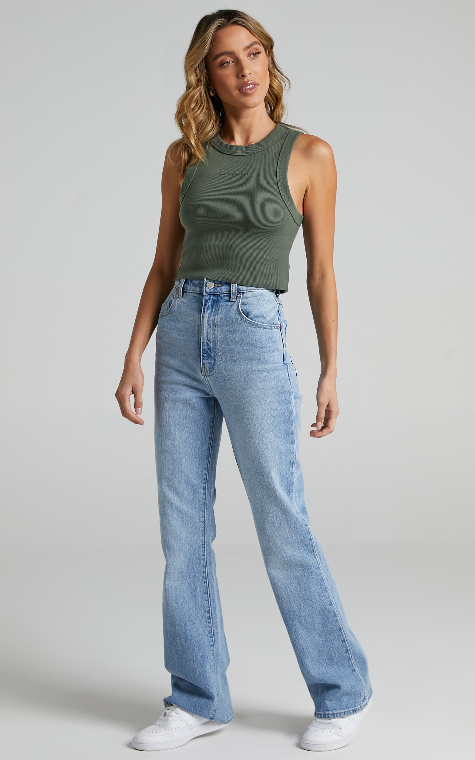Cooler than your basic basics, the Abrand - Heather Singlet is a must-have! This crop is super soft and thick, giving it a structured silhouette. Featuring Abrand embroidery and an edgy raw hem, it's a great piece to wear all year 'round and can be styled in many ways. Keep it casual and pair it with some high-waist straight leg jeans, dad sandals and sunglasses to top it off!