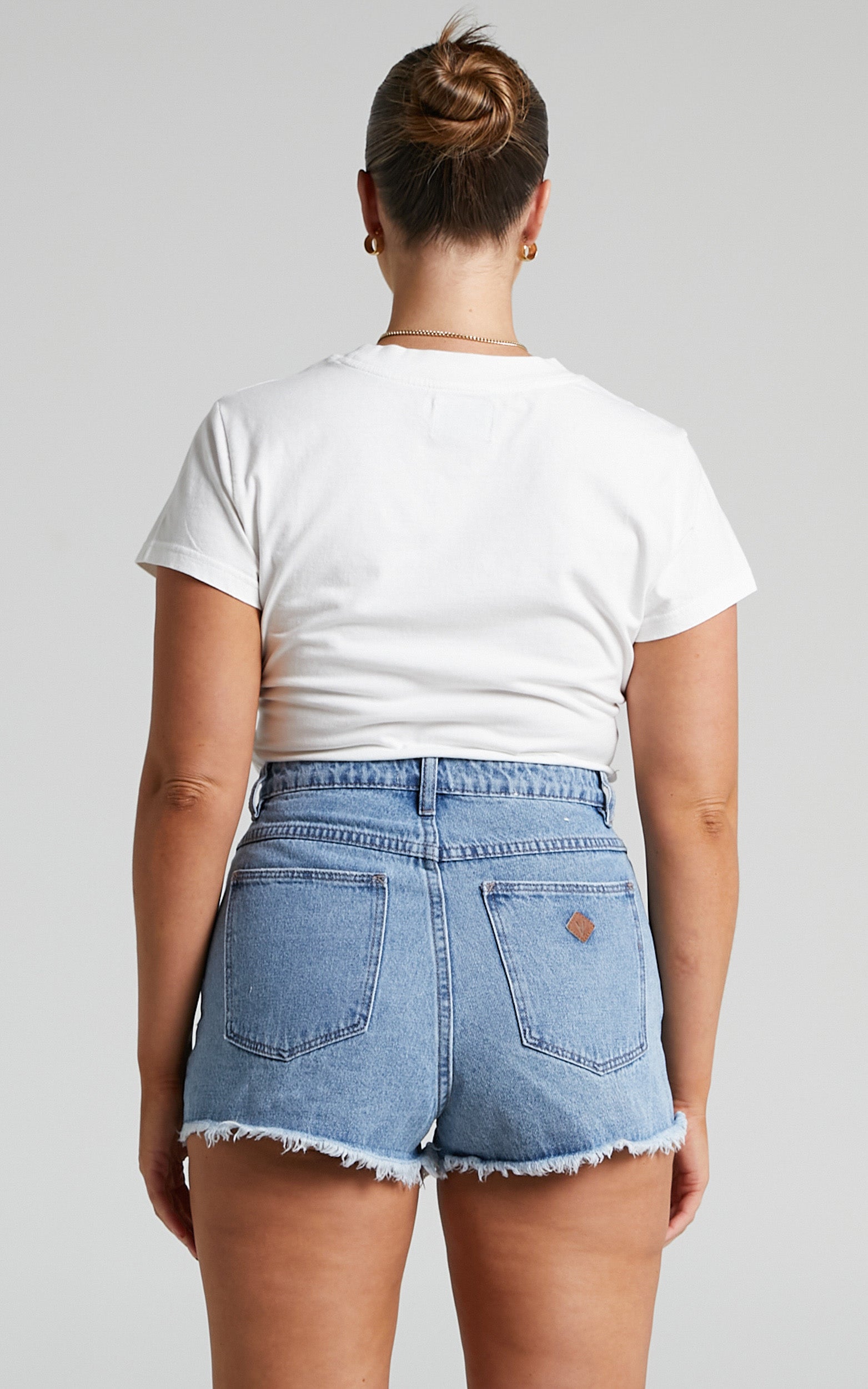 - Distressed detailing and raw frayed hem