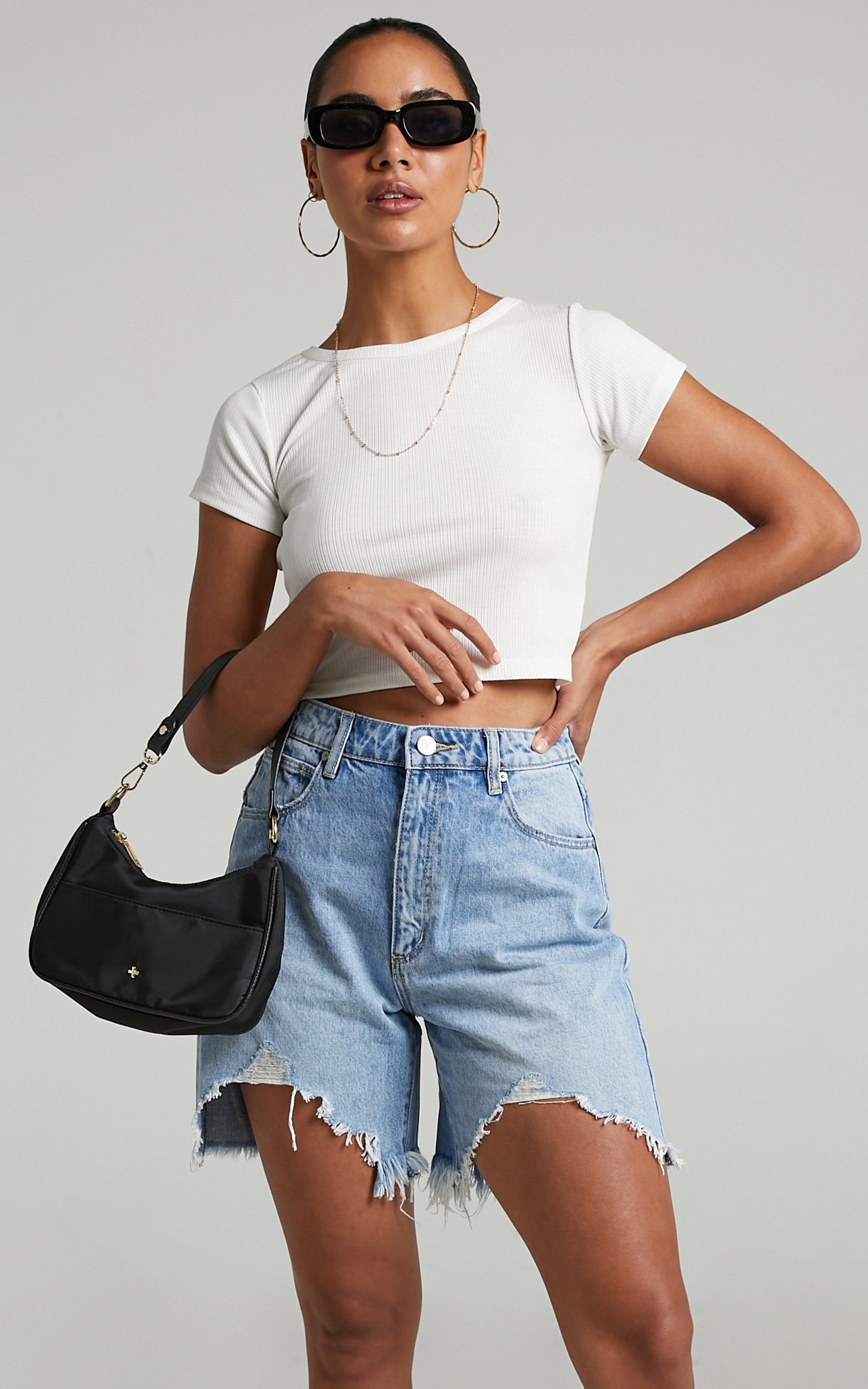 Next minute, you’re a 90s babe in the Abrand - A Carrie Shorts! These cuties feature a mid rise waist, modest mid-thigh length and distressed detailing. They're elevated but oh-so easy to wear with all your favourite separates right through spring and summer. Slip them on for the day with a cropped tee, chunky sandals and a tote bag or dress them up for nights out with a corset top, heeled sandals, stacked necklaces and a mini shoulder bag!