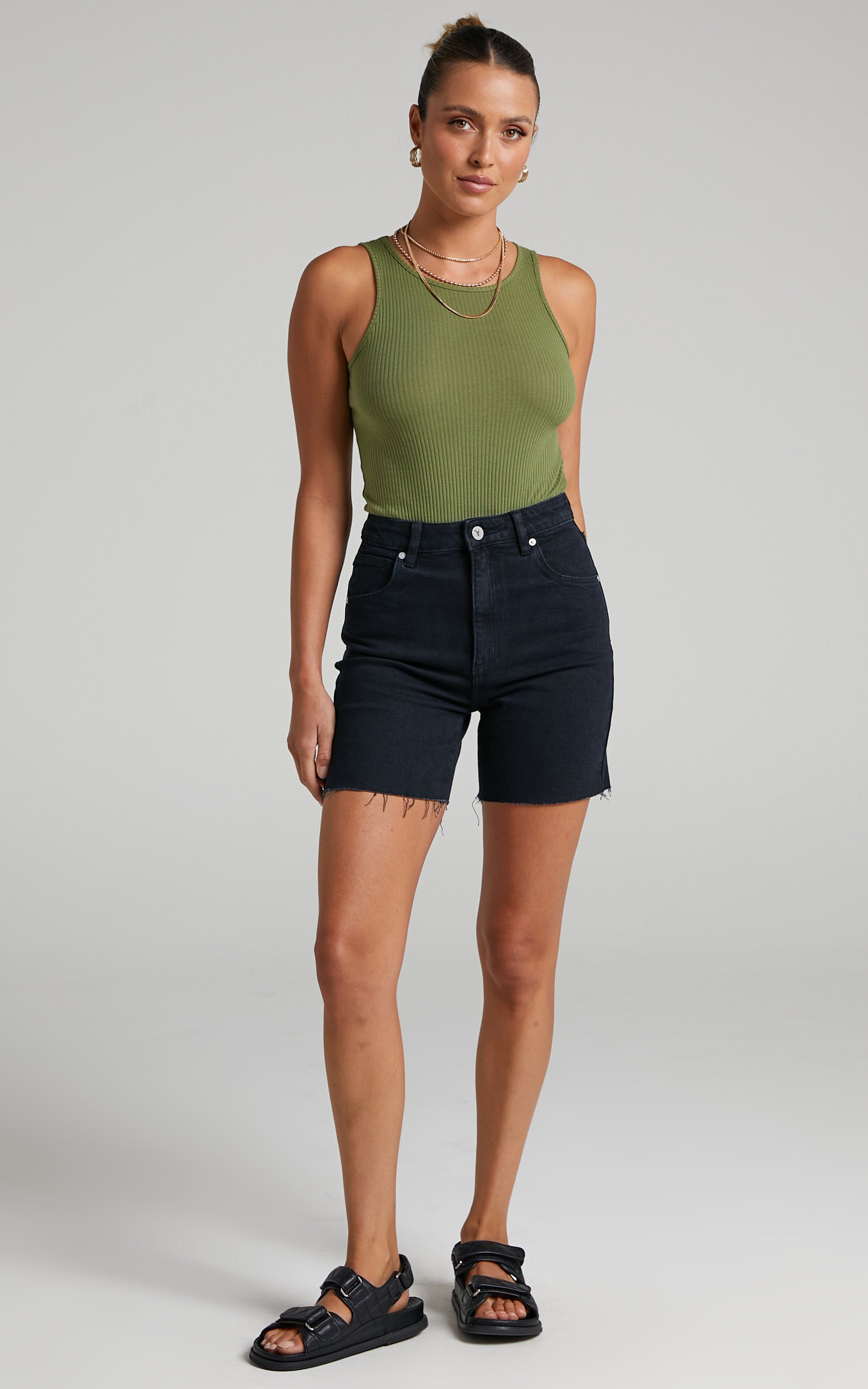Your summer denim collection needs the Abrand - A Claudia Cut Off Denim Short in Dead Of The Night! Easy and versatile, this everyday short features a high waist, longer hem and raw hem detailing. It's such a flattering style that will easily match with all your other summer staples. Wear it to the beach with a ribbed tank top and dad sandals or style it up for cocktail hour with heeled sandals and a crop top!