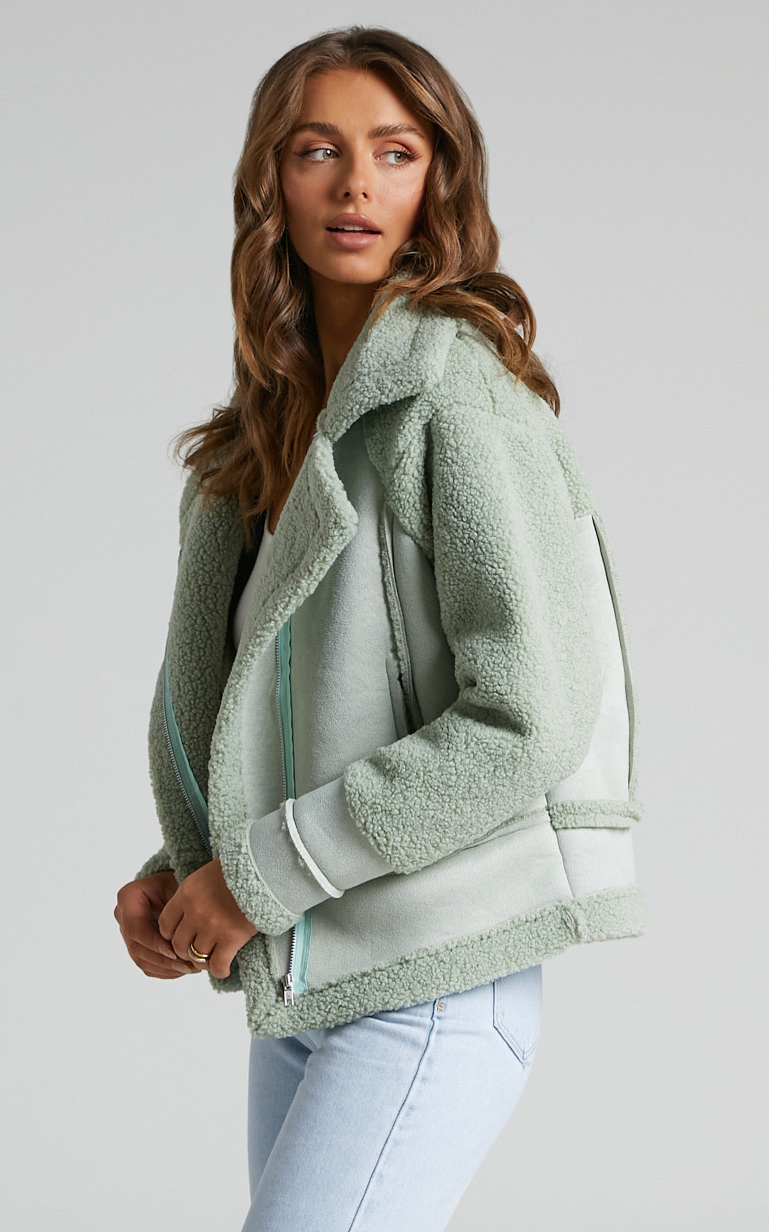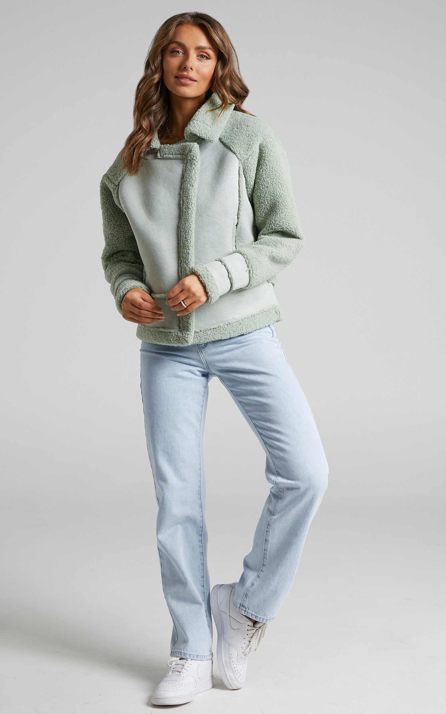 Zunette Zip Front Cosy Teddy Jacket in Sage
