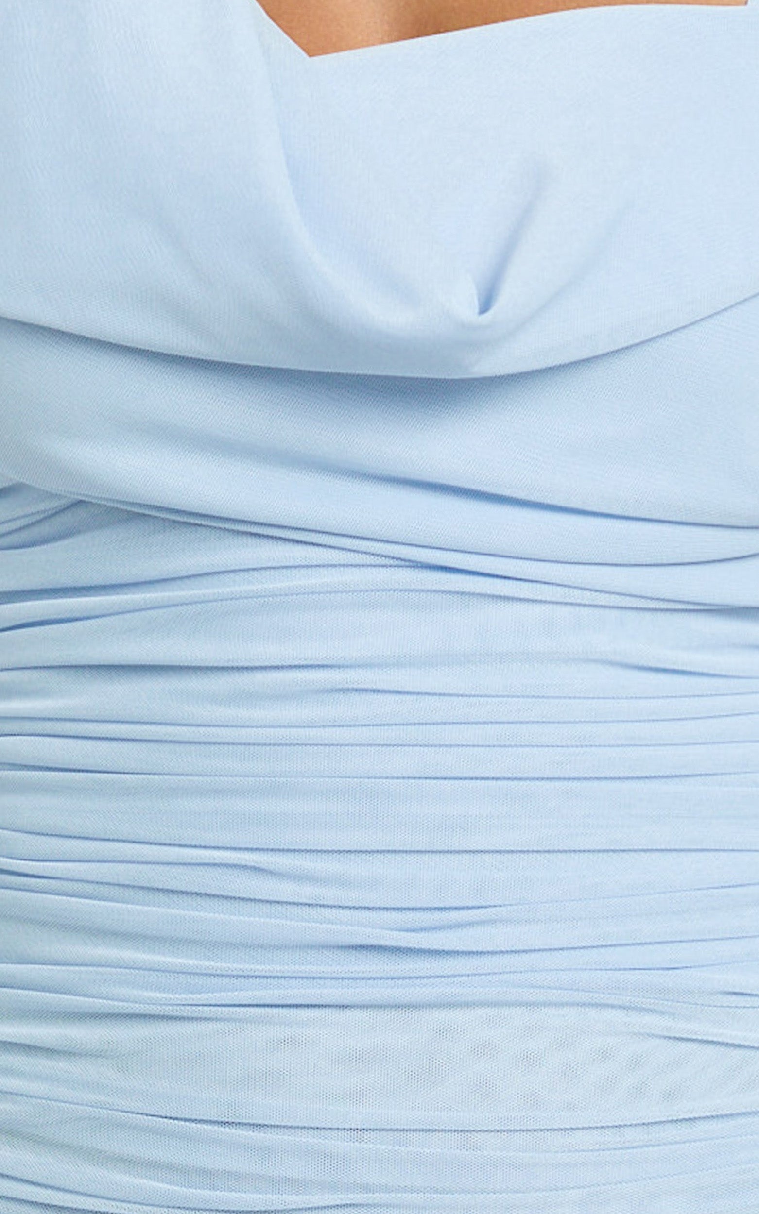 Larson Maxi Dress - Asymmetric Tie Neck Column Dress in Pale Blue