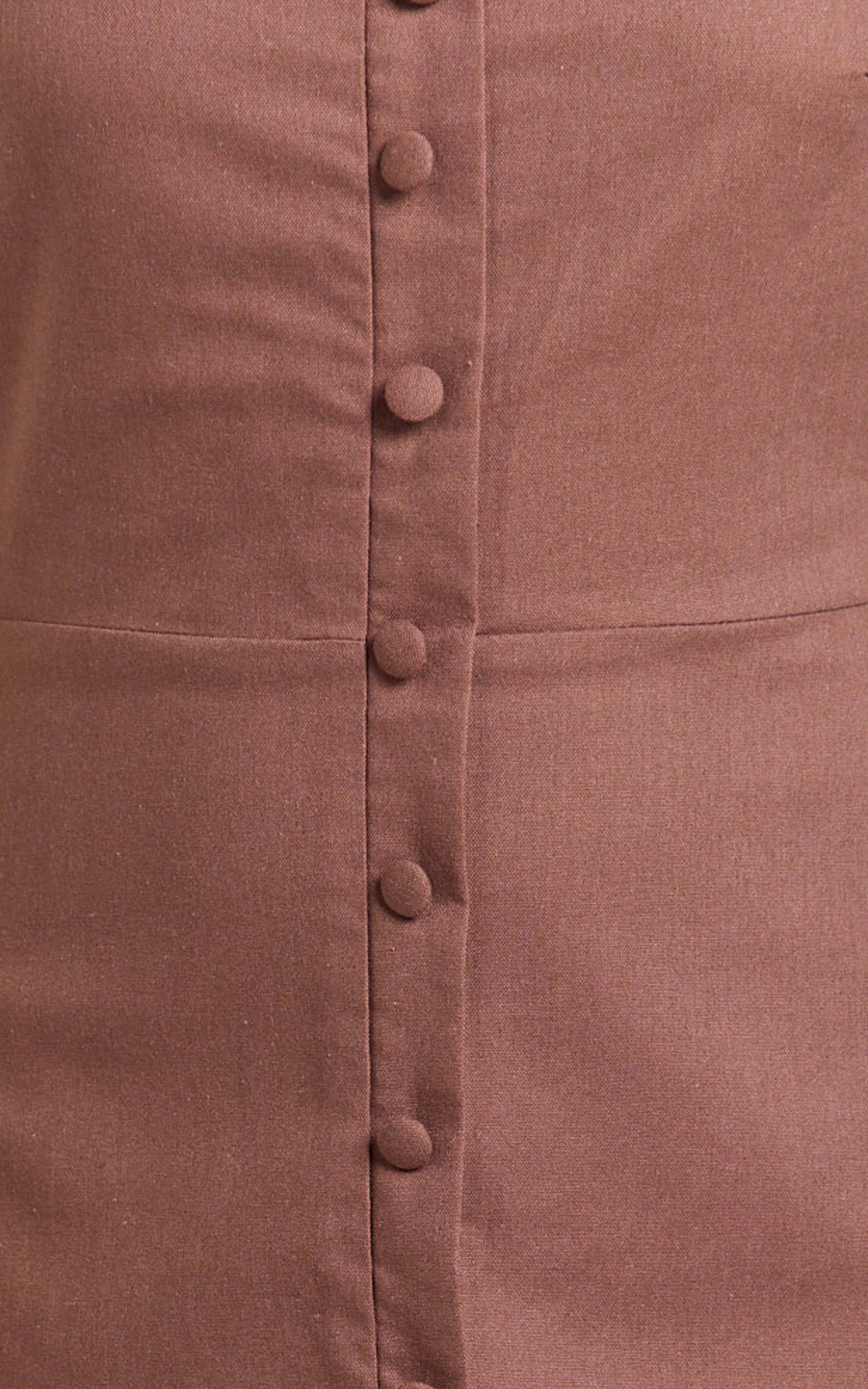 Marla Midi Dress - Square Neck Button Front Shift Dress in Chocolate