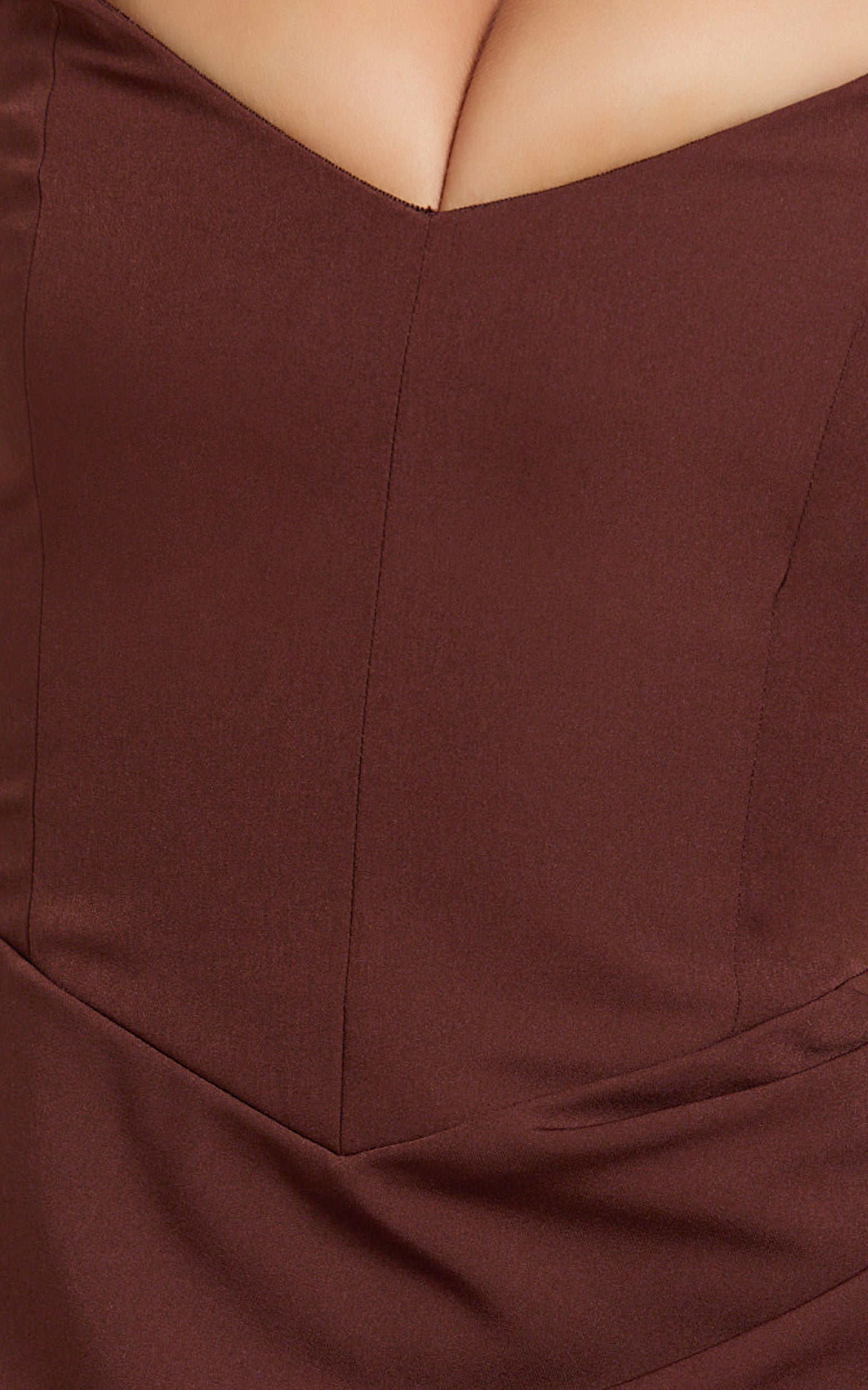 Veronika Maxi Dress - Off Shoulder Plunge High Split Dress in Chocolate