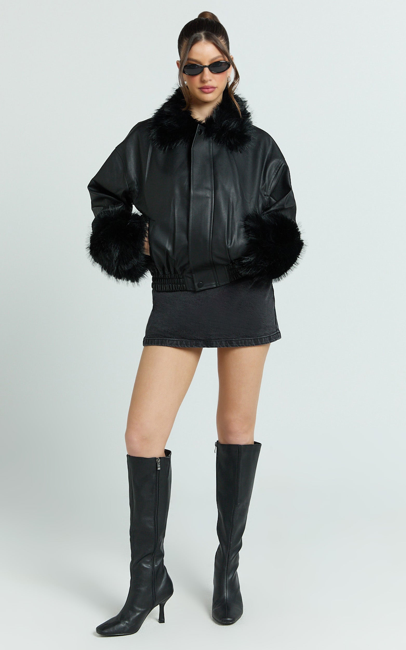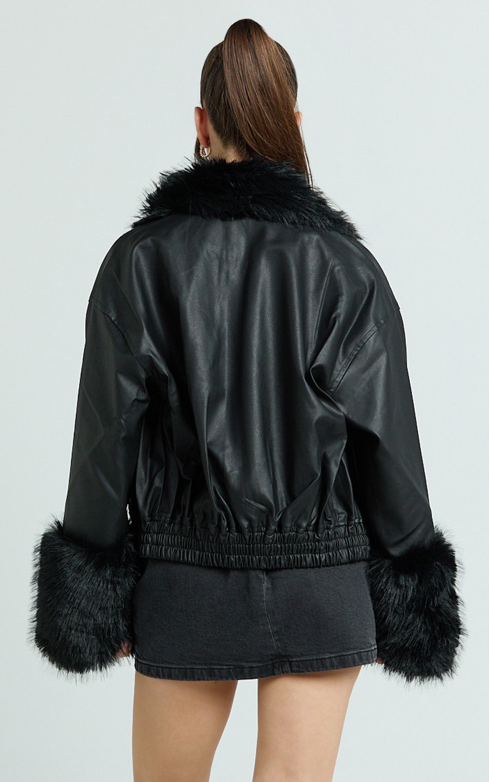 Zuri Jacket - Faux Fur Collar and Cuff Suede Jacket in Black