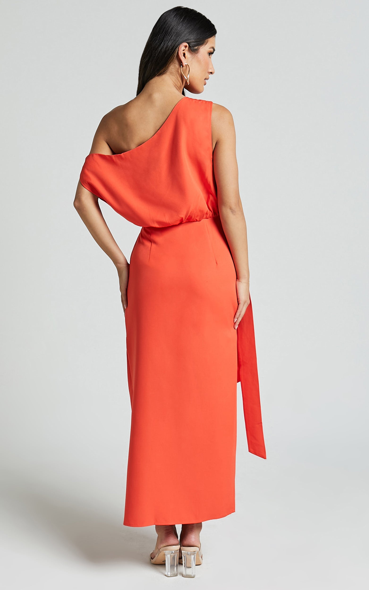 Zuri Midi Dress - One Shoulder Wrap Dress in Orange