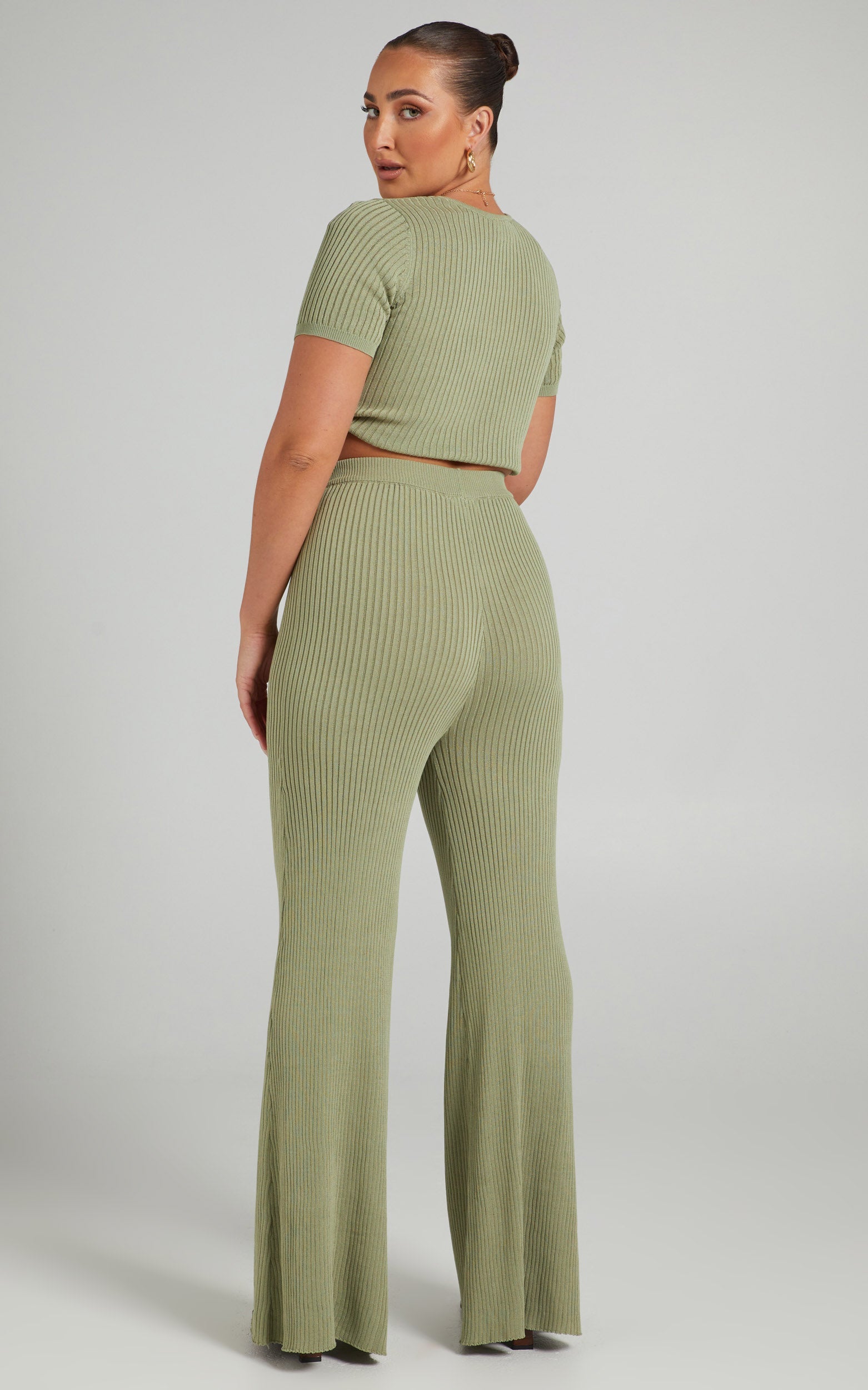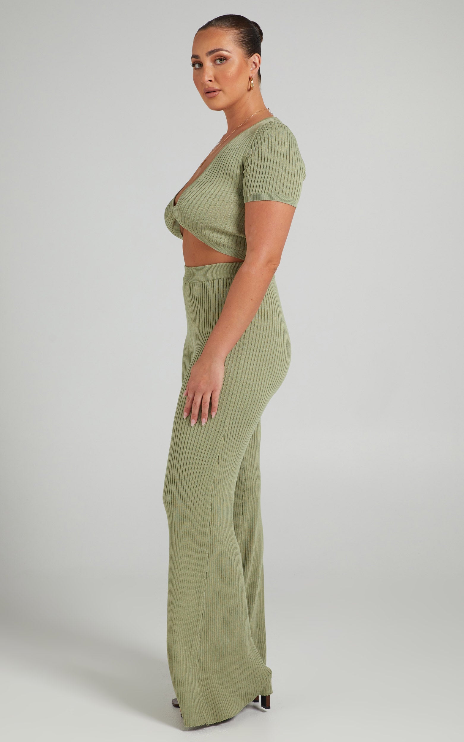 Zyanya Ribbed Cropped Two Piece Set in Sage